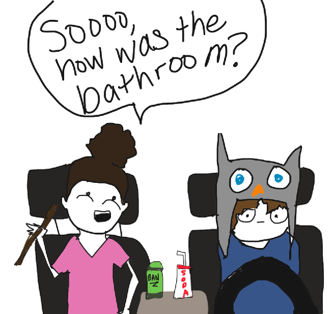 I love your illustrations so much! I like the idea of using the deodorant, definitely some creative thinking there. But I avoid public bathrooms like the plague. I’d rather literally pee in public.