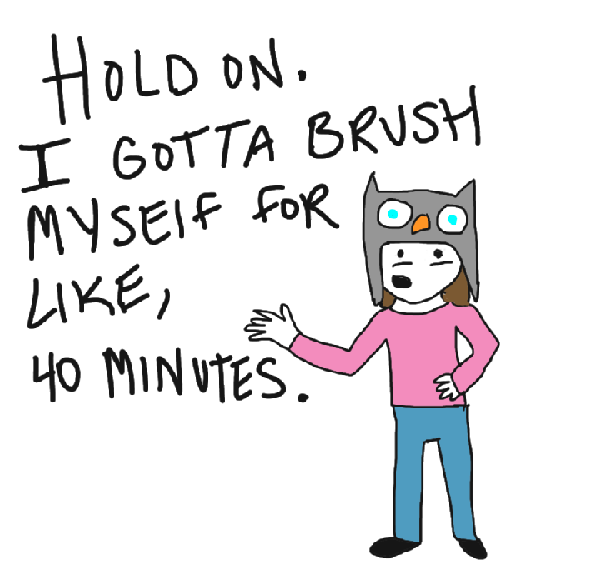 And that’s how the cookie crumbles. I have many other less boring but still strange ways of coping with my SPD, as I’m sure many of you do as well, but I’m going to end it here. Moral of today’s post: if a Hollister model dressed in a fancy suit wants to take you out for a nice dinner date, don’t tell him you have to brush yourself for 40 minutes (even if you DO). This has never happened to me, but when it does, I will be ready. I will be PRE-BRUSHED.