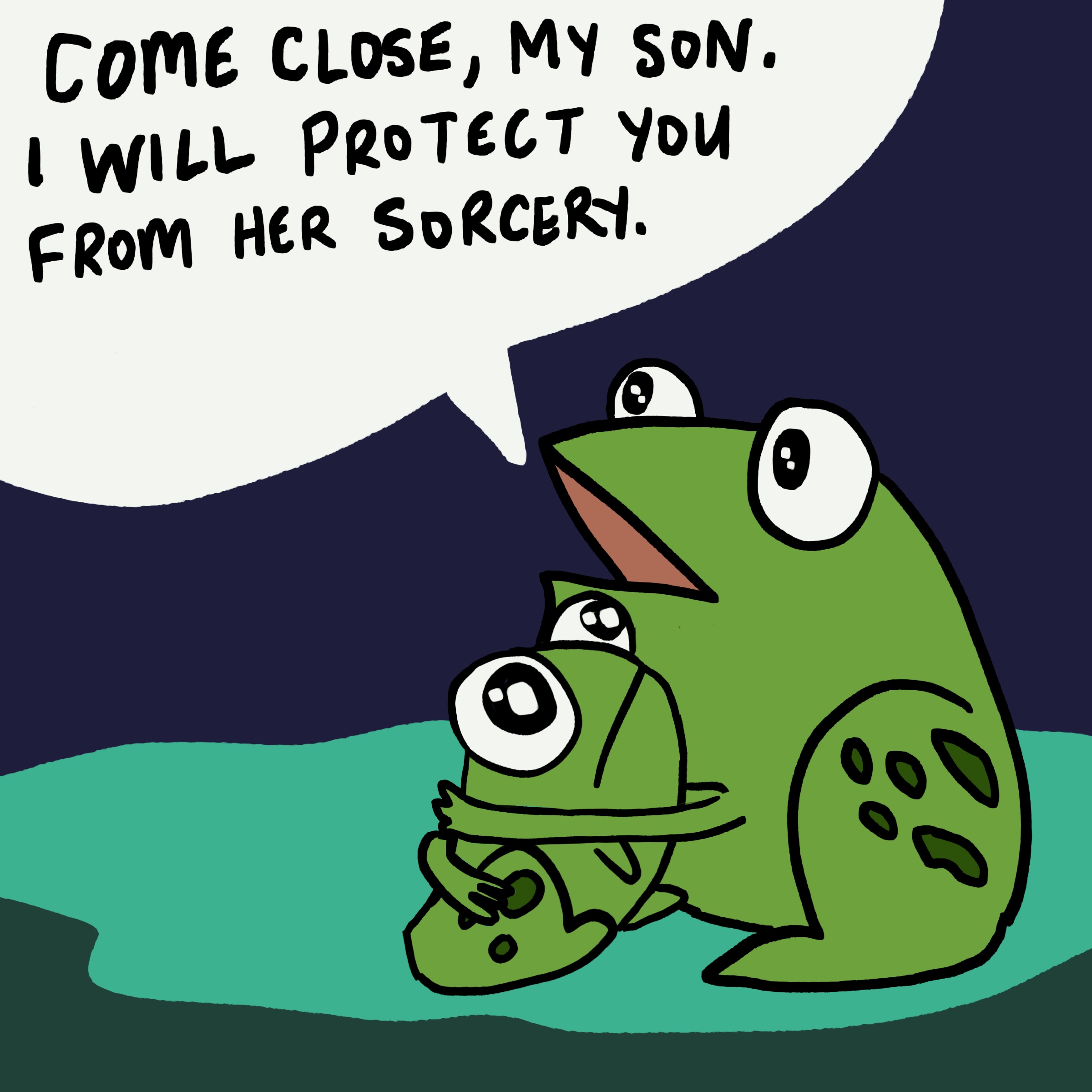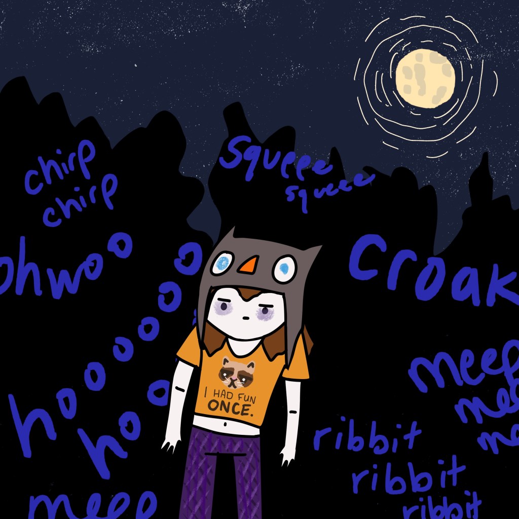I stood outside my house, in the darkness. The critters of the night were singing loudly in the dense woods.